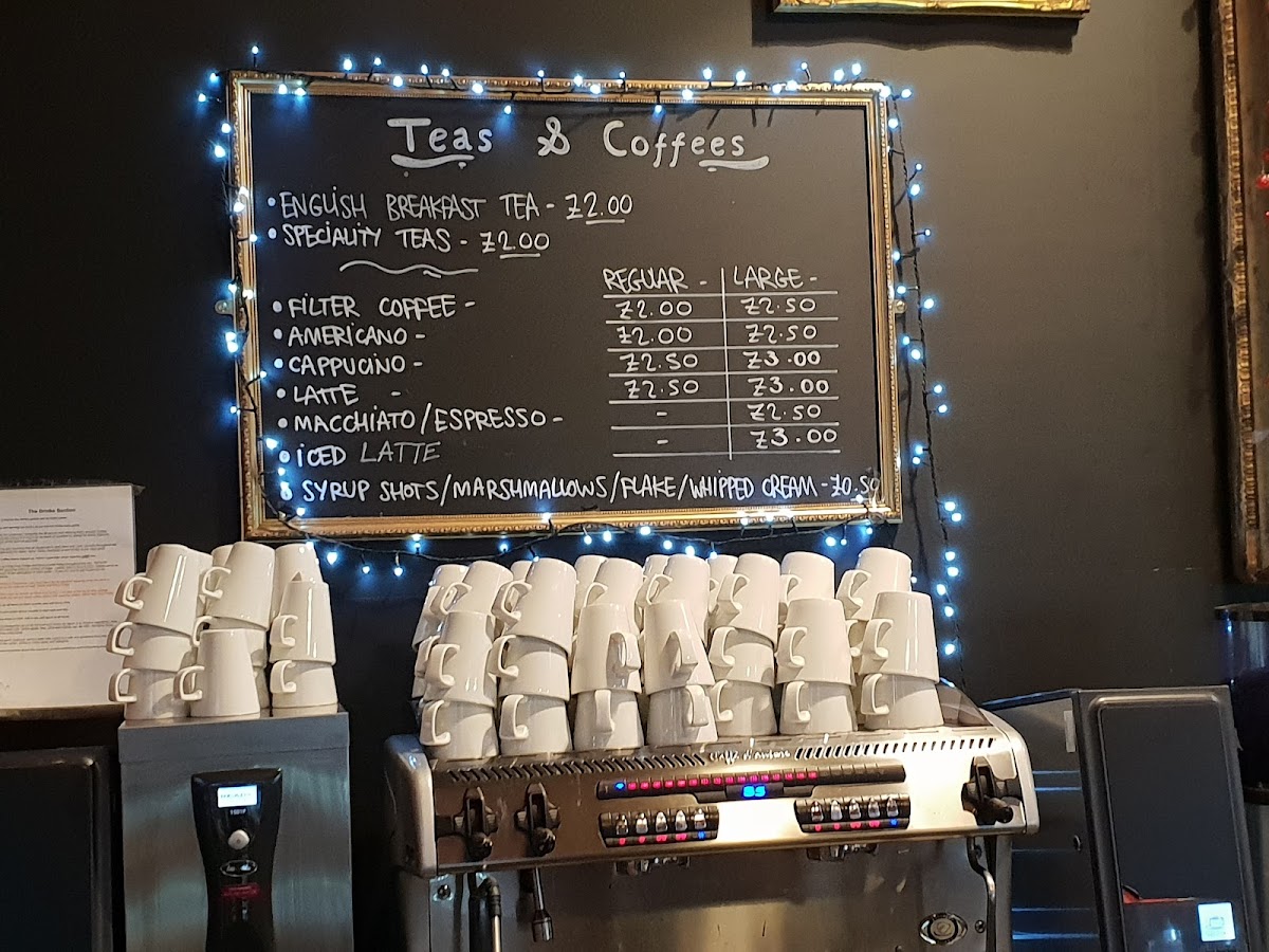 Those seeking a festive touch can indulge in seasonal drinks like Chocolate Orange and Pumpkin Spice. The atmosphere is friendly and inviting, with outdoor seating that overlooks the children's play area, perfect for families enjoying a day out.